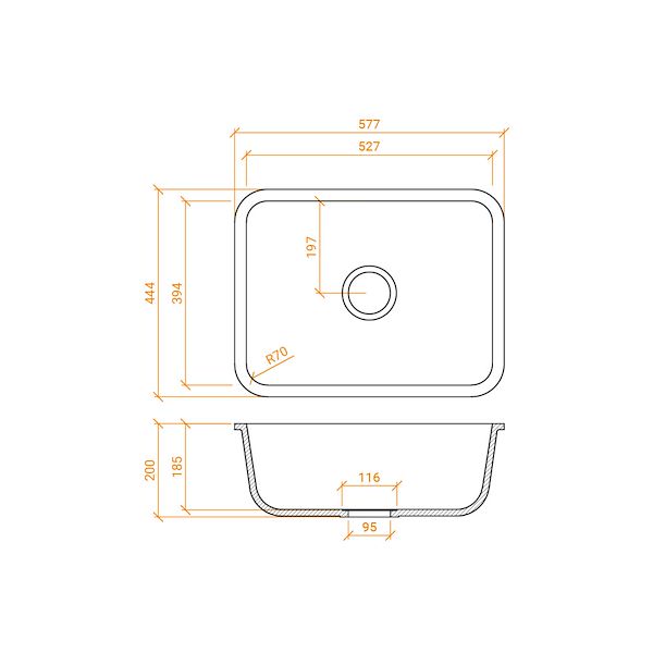 Lavelli cucina incasso HPL/FENIX con fondo inox