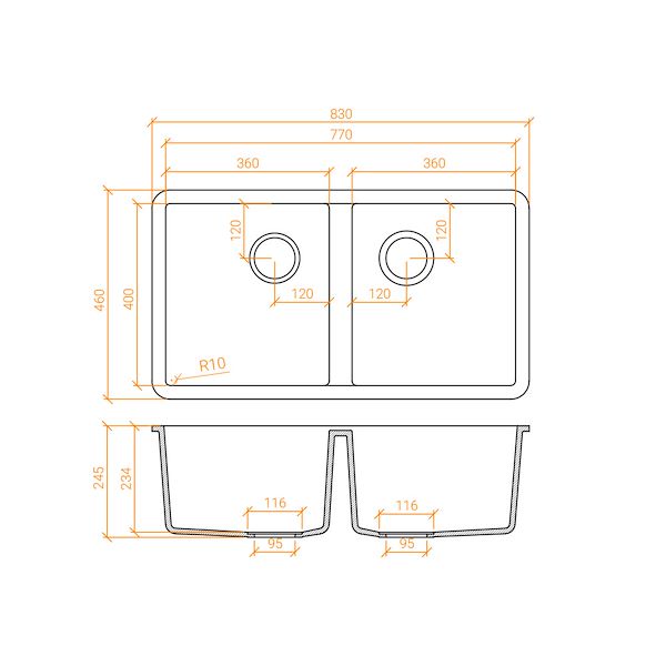 Lavelli cucina incasso HPL/FENIX con fondo inox