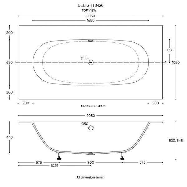 205 x 105 x h 53/54,5 cm